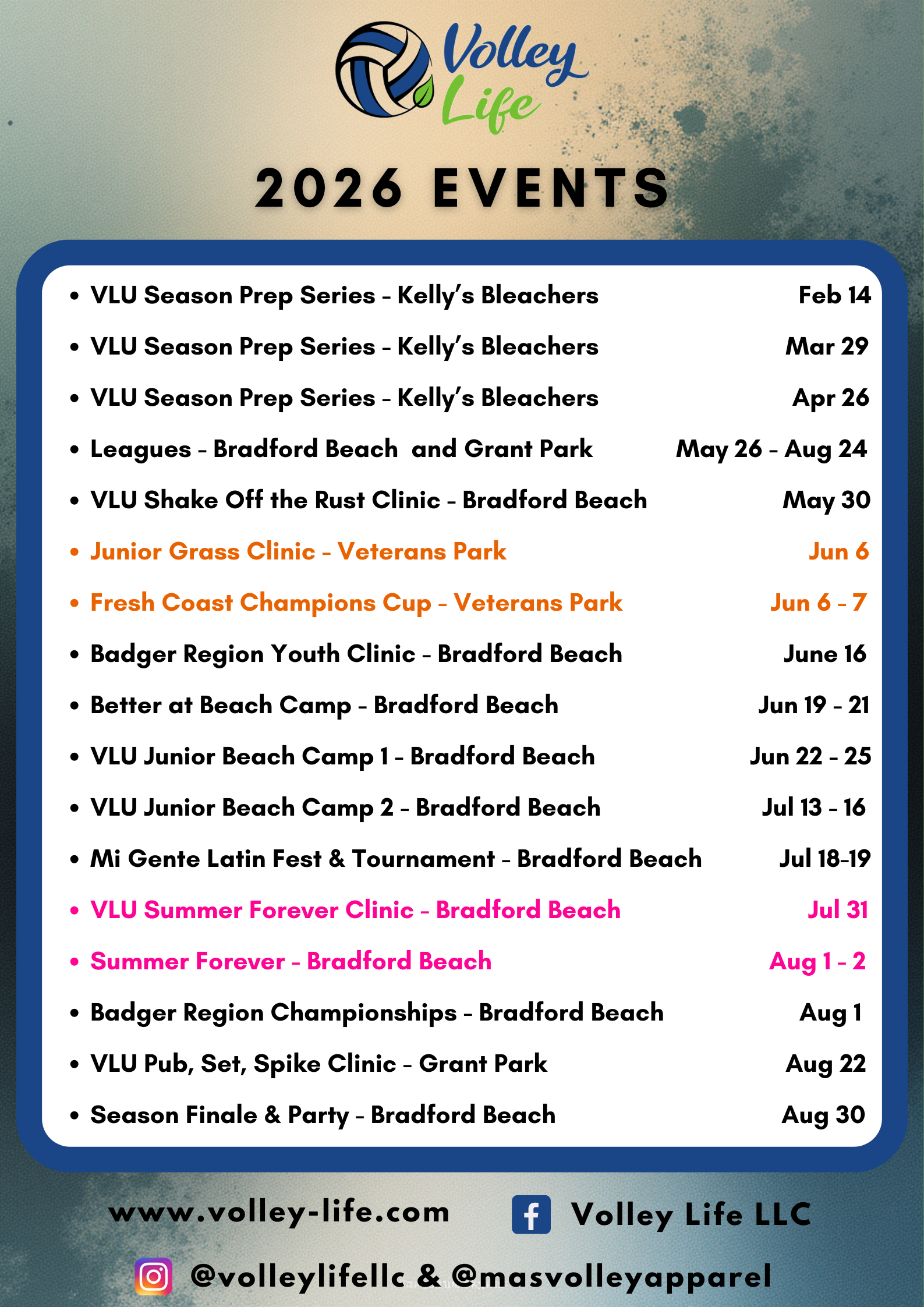 Our objective is to serve and develop the growing volleyball community in Southeastern Wisconsin and in doing so make it a premiere destination for volleyball in the country. We offer a variety of services, including coaching, private lessons, leagues, tournaments, events, and consulting in our efforts to provide the best volleyball experience possible to our clients and the community.